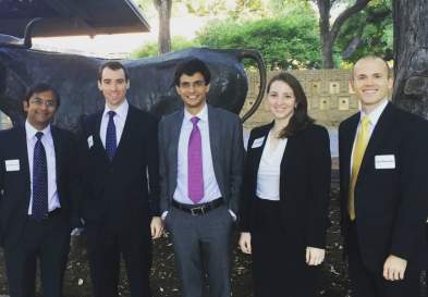 Susan Hedglin (MBA ’17) with classmates. Dean’s Fellows have the opportunity to give back to UNC Kenan-Flagler through a mini consulting engagement. The...